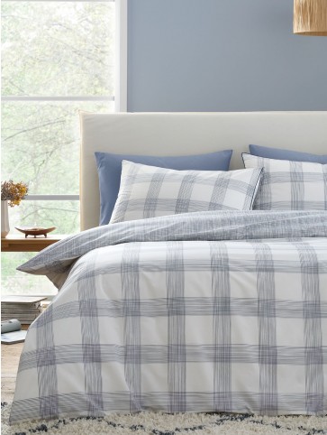 - Bianca Marlow Check 200 Thread Count Cotton Percale Blue Duvet Set