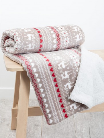 - Stag Fairisle Sherpa Fleece Grey Throw